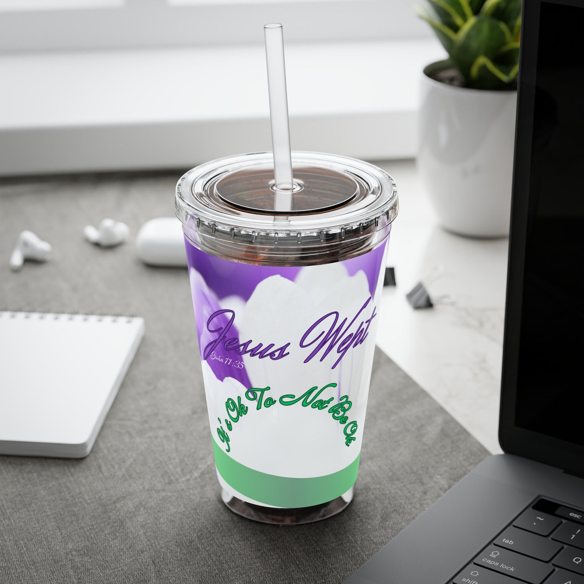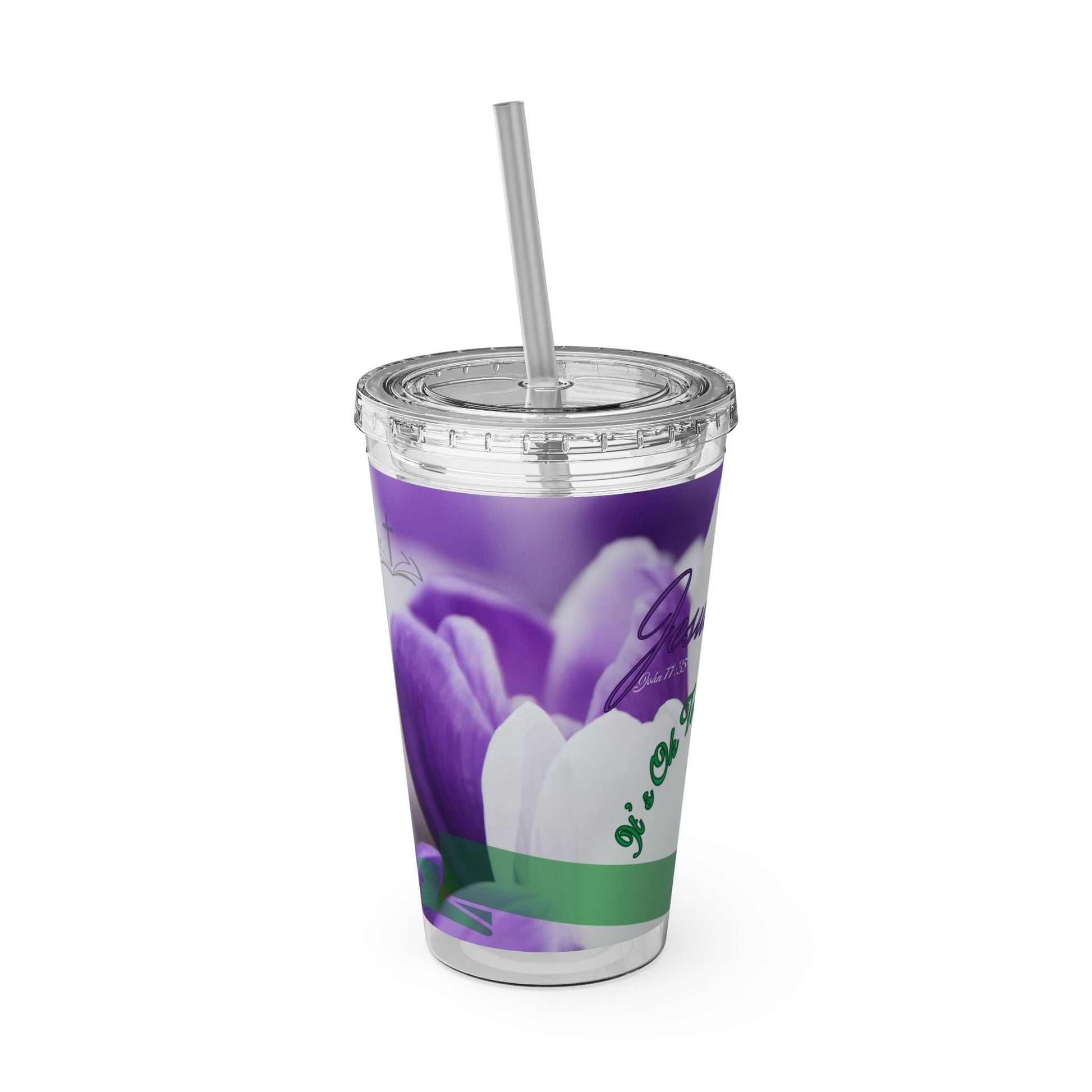 Inspirational, Christian, Religious, Jesus Wept, Green/Purple, Cup, Sunsplash Tumbler with Straw, 16oz