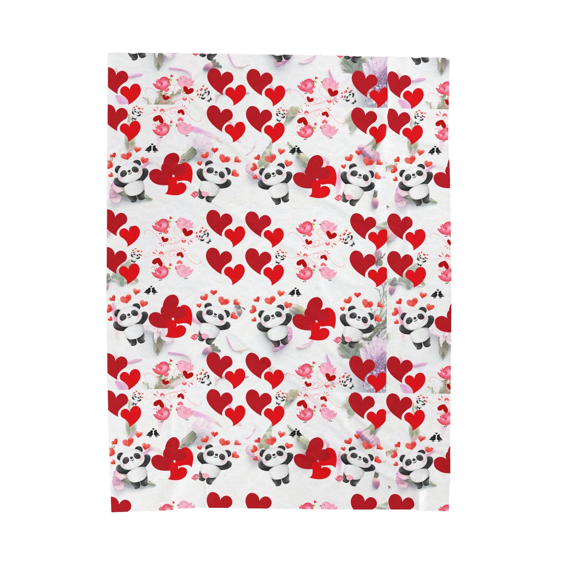 Valentines Pandas Hearts Plush Blanket, Lovebirds Heartwarming Blanket, Valentines Day Gift Idea